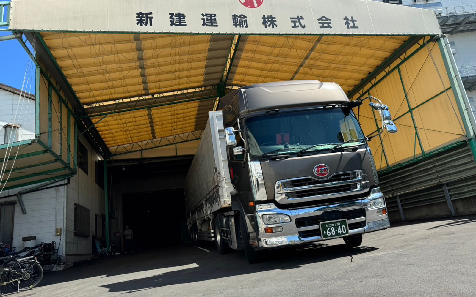 2トンから8トン車までの平車両やユニック車にて住宅建材(主に外壁材)の大阪・兵庫・和歌山 方面の建築現場及び取扱店様への配送をメインとしております。