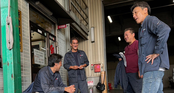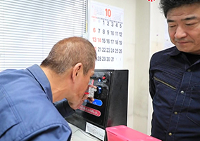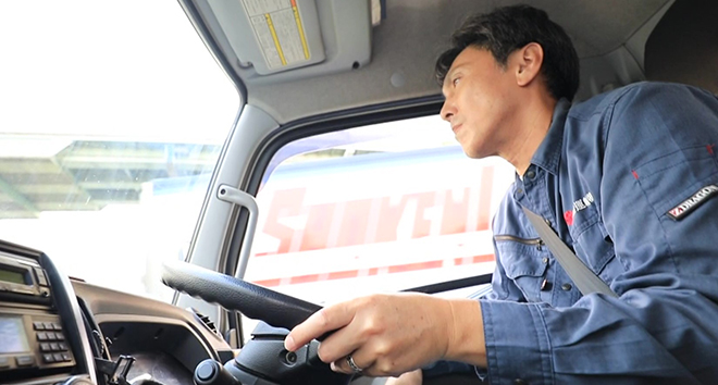 午後の配送を終わり帰社。配送終了後、再度アルコールチェックを行います。